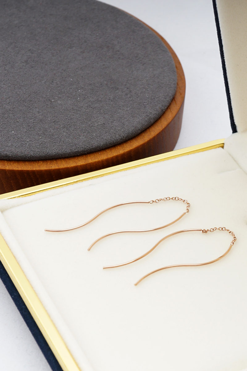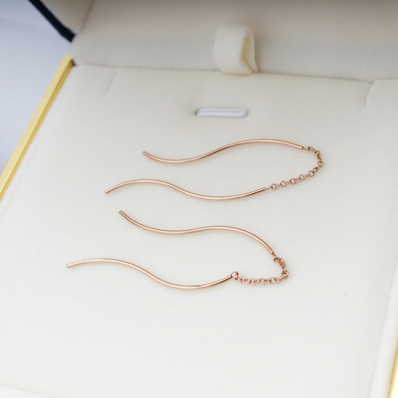 European and American titanium steel long version earrings ear necklace wave flow Su ear necklace rose gold girls fashion earrings