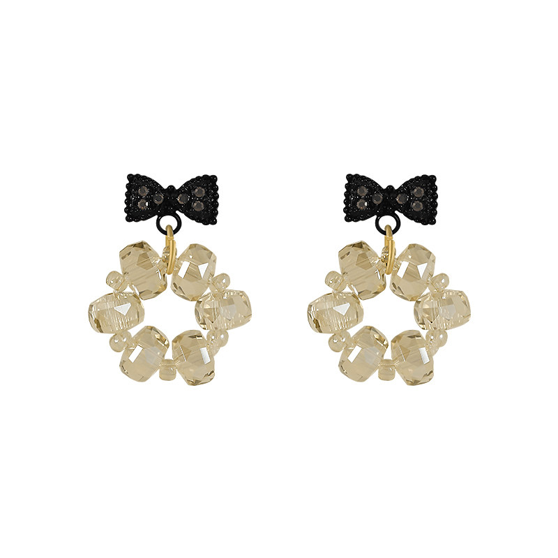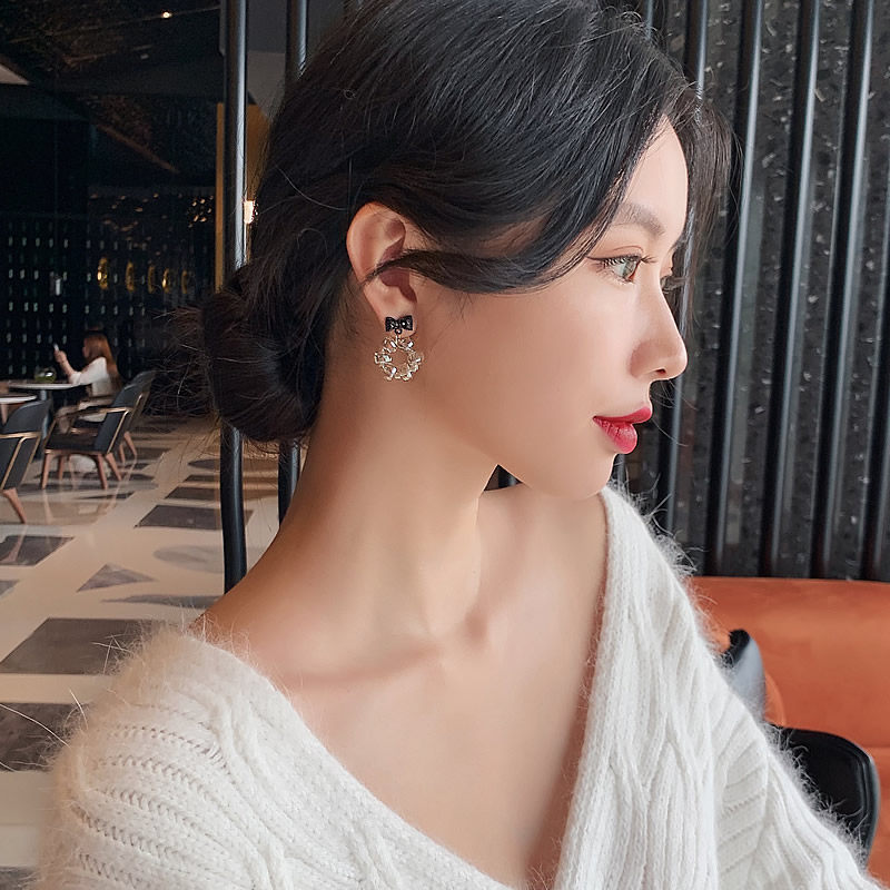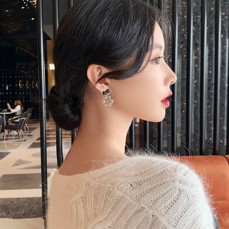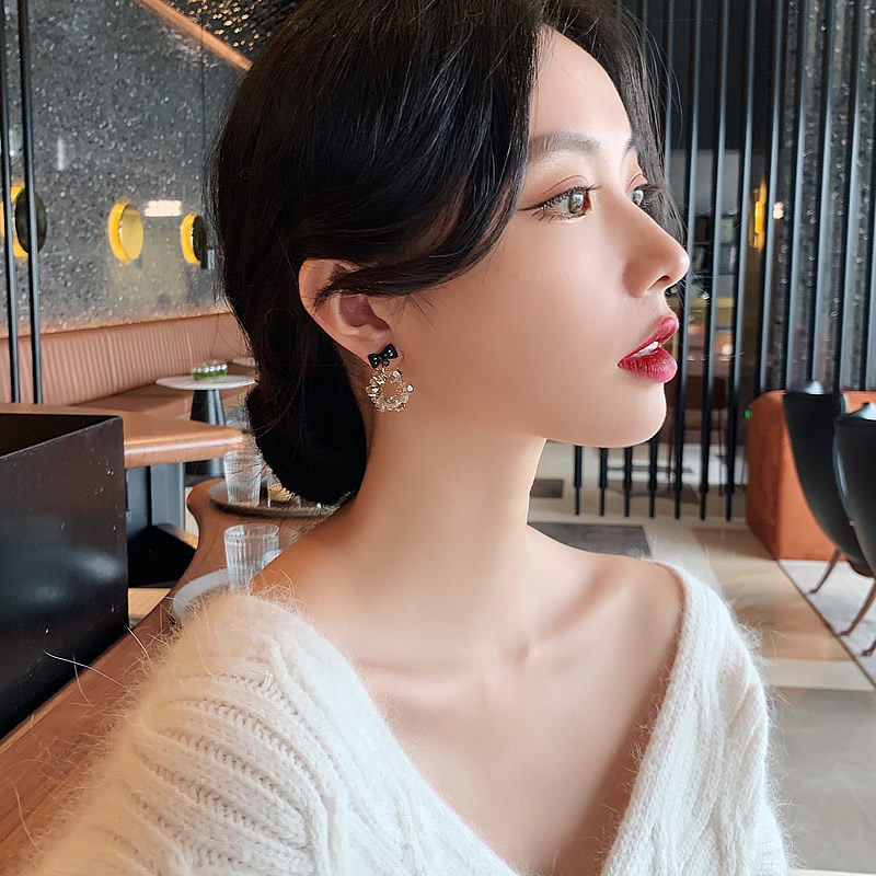 Black Bow Tie Crystal Earrings 2021 New Tide Pure Silver Needle Korea Temperament Earshot Female Autumn Winter Ear