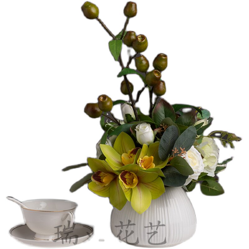 High-grade Phalaenopsis simulation flower decoration dining table living room TV cabinet potted decoration fake flower orchid set decoration