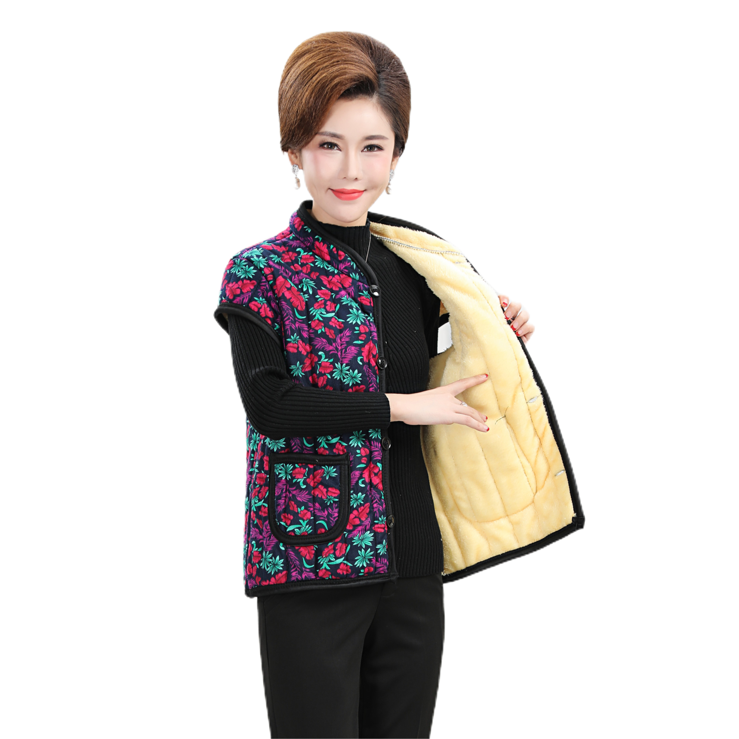 Mid-winter cotton nails half-sleeved and thickened middle-sleeved cotton jacket shoulder to keep warm vest mom coat