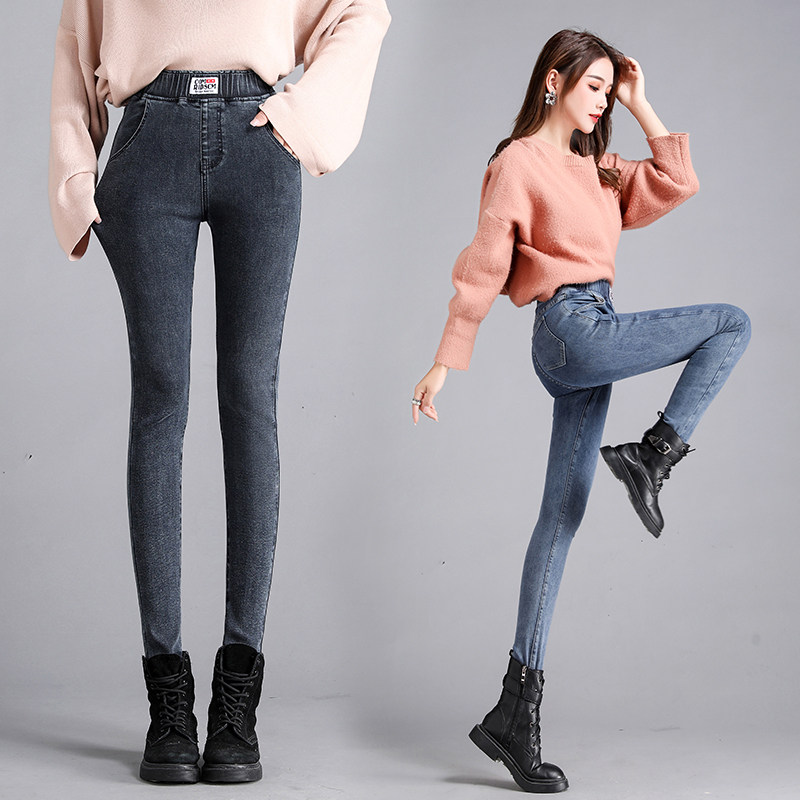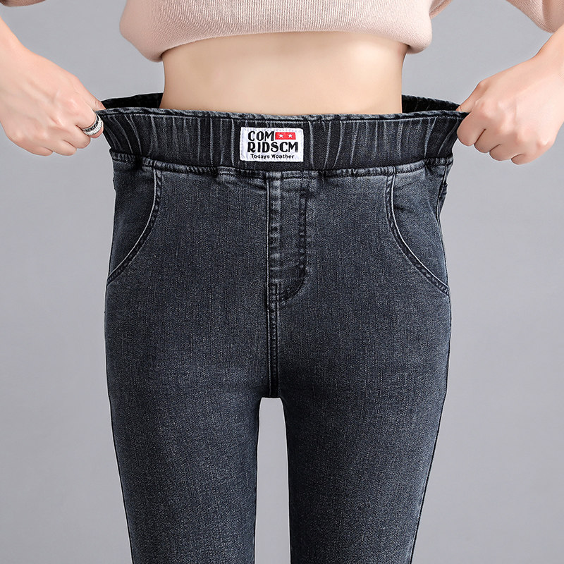 Black elastic waist jeans women's spring and autumn 2022 new high waist show thin outer wear bottoming ladies cigarette pipe pants trend