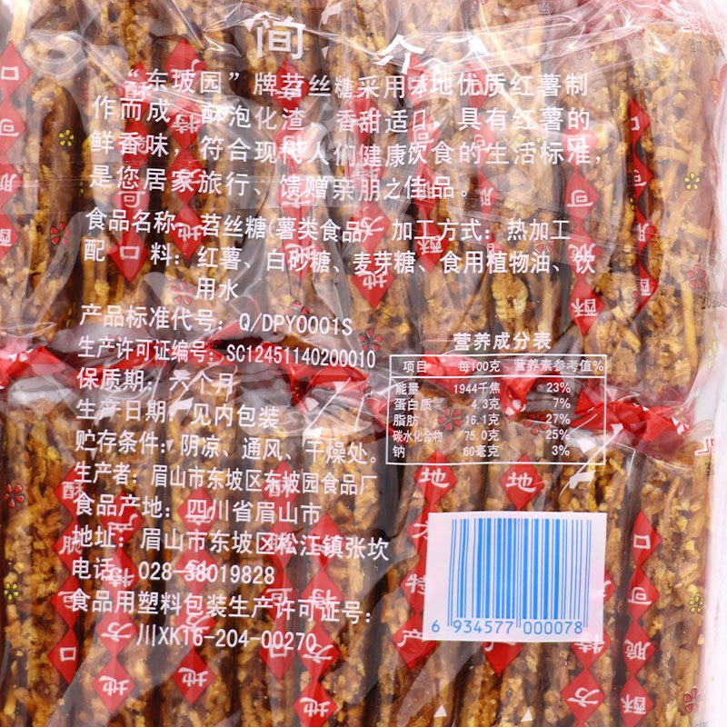 Sichuan Dongpo Yuan Sweet Potato Candy 460g 20 packs sweet and crispy nostalgic casual snacks