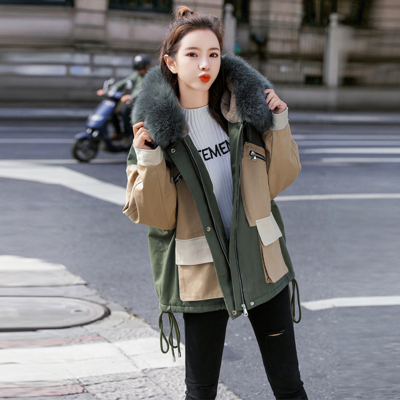 Winter new 2021 small short section ins Hong Kong style plus velvet Parker down padded jacket women's tooling padded jacket tide