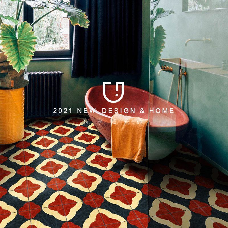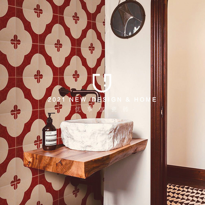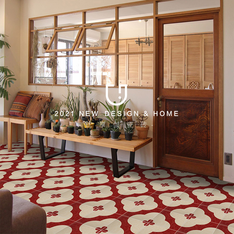 ins vintage small flower tile net red toilet tile Nordic bathroom wall tile red courtyard floor tile wall tile