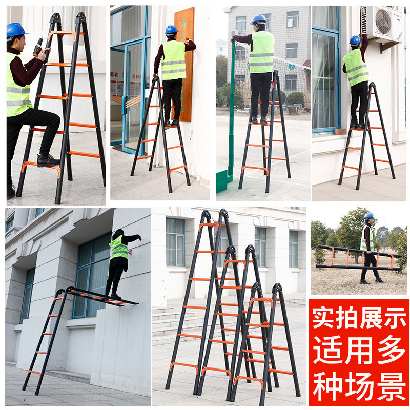 Herringbone ladder Home folding telescopic lifting indoor multifunctional thickened double side engineering ladders easy ladders-Taobao