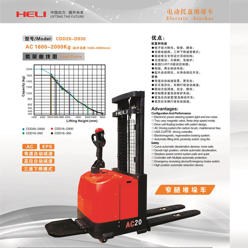 Heli heavy duty 1 5 ton 2 ton all-electric stacker small hydraulic stacker automatic lift truck handling loading and unloading
