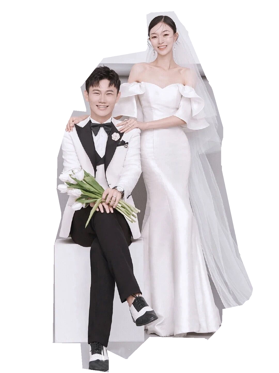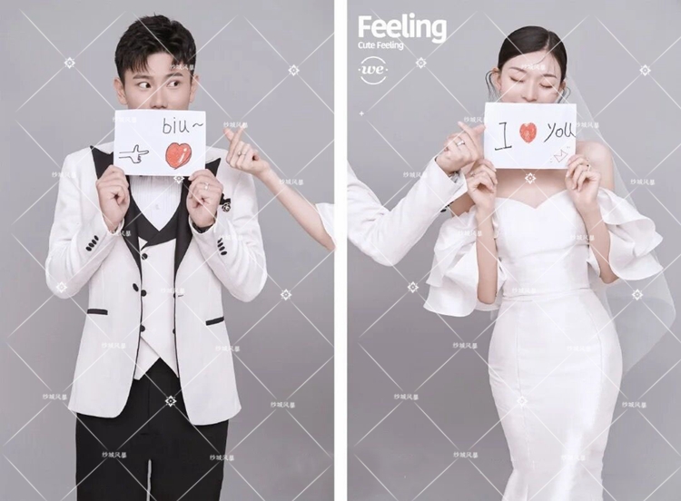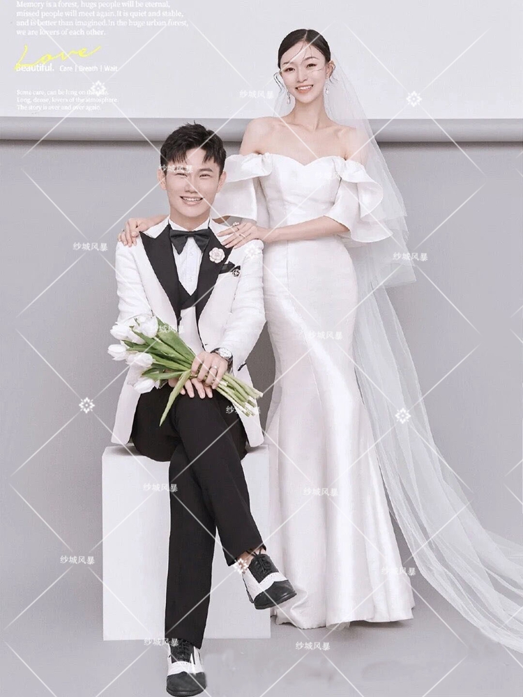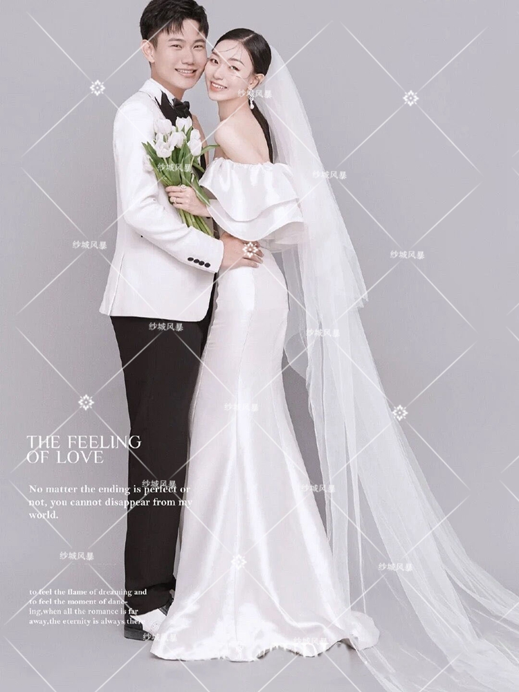 Studio theme wedding couple photo shoot photography clothing retro one-shoulder simple satin mermaid dress