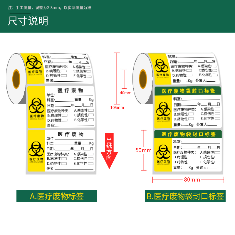 Medical waste yellow (1000 stickers) Medical waste green (1000 stickers) Support customization Any size Support customization Any pattern customization Please contact customer service