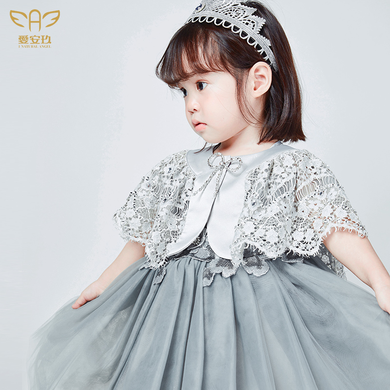 Love Anjiu flower girl Wedding little girl dress Children's birthday Princess skirt Baby year-old girl Little owner shawl