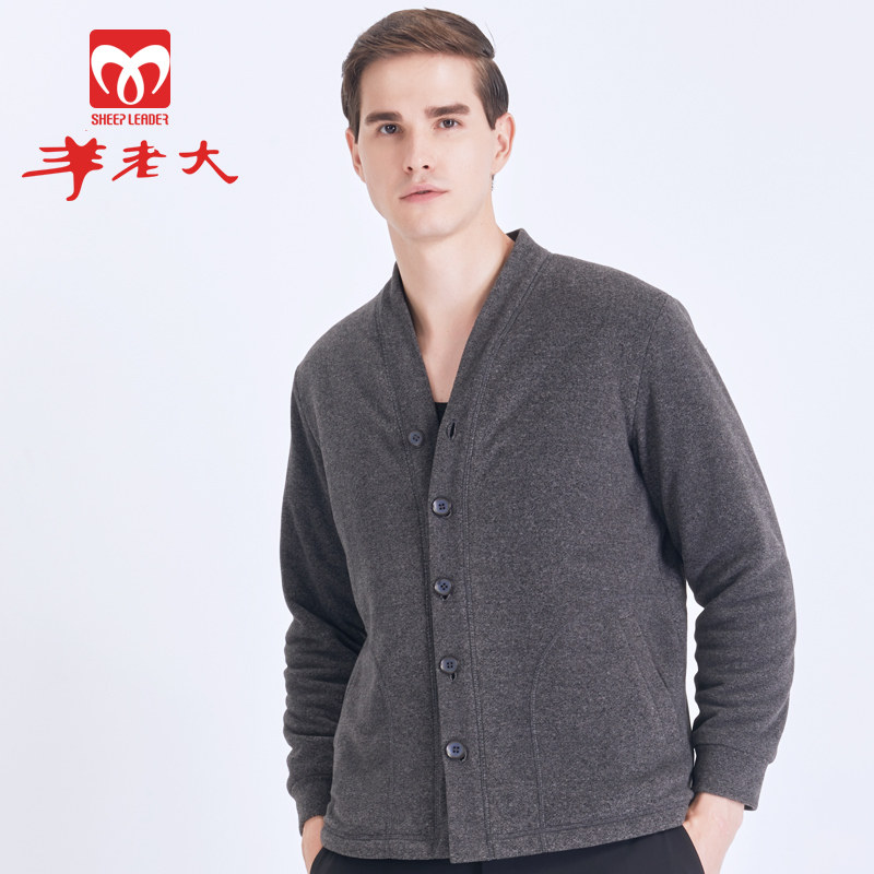Sheep boss wool jacket autumn and winter long-sleeved V-neck loose men's warm cotton coat casual cold-proof top WAA101