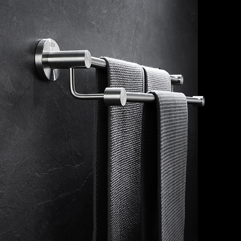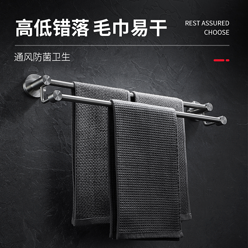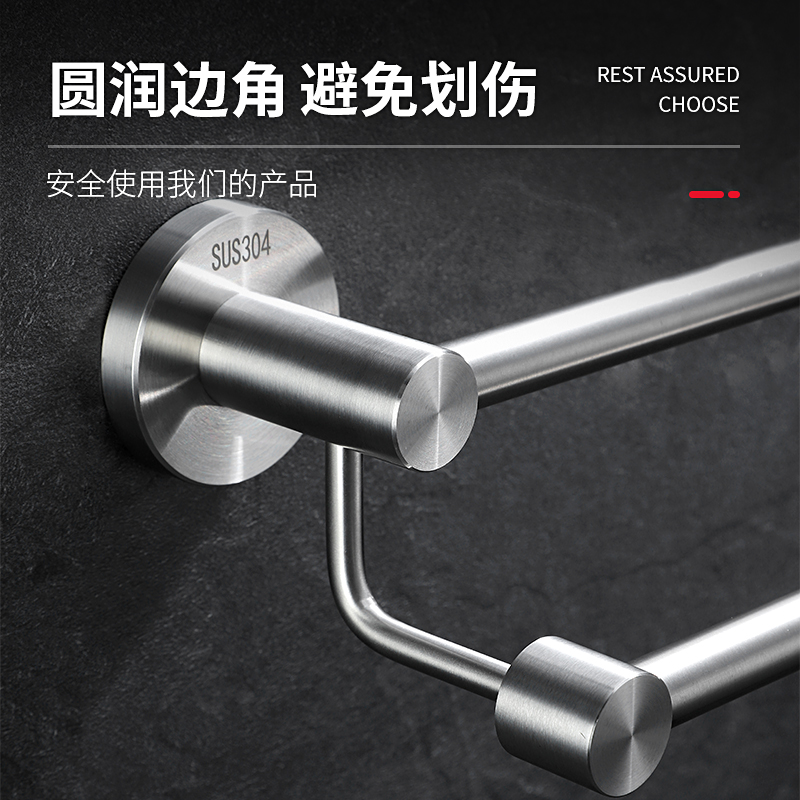 Towel-lever double-lever free of punch 304 stainless steel Makeup Room Wool Towel Rack Bathroom toilet-free Towel Rack