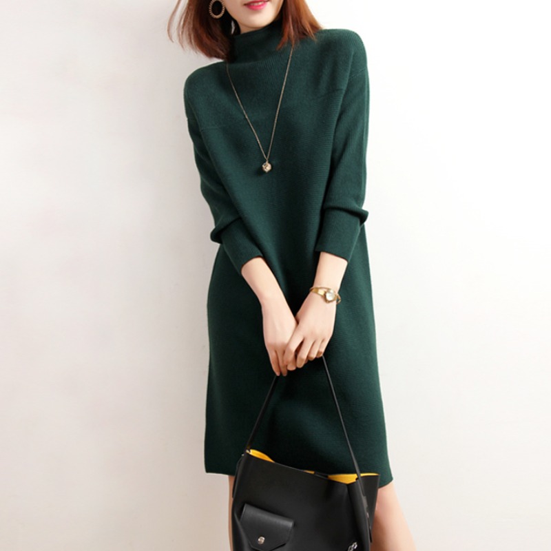 Sanskrit 2022 spring new semi-high collar knit inside lap dress with long version loose long sleeve wool A word dress