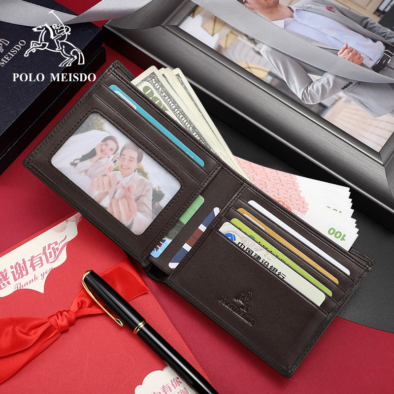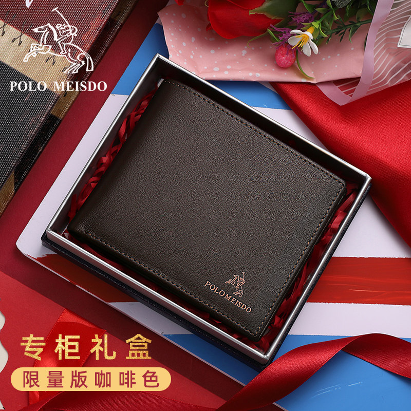 British Rav Laurenma ball men's wallet Short-head layer Bull Leather Wallet designer Fashion Folding Multi-Position Coffee Color Wallet