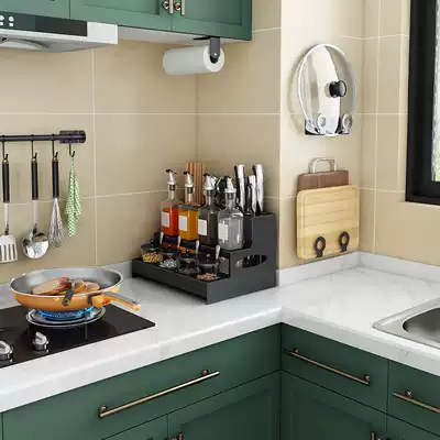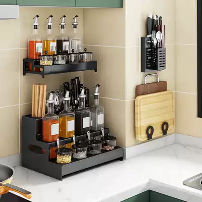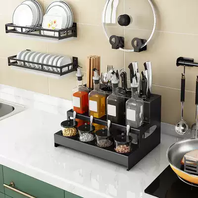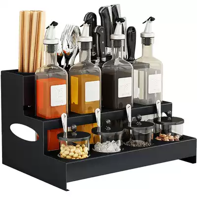 Light luxury seasoning box set Household combination kitchen seasoning oil, salt, sauce and vinegar bottles and cans Knives and chopsticks storage shelf