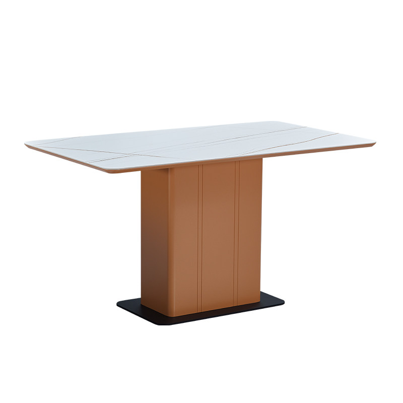 Italian Extreme Minimalist Rockboard Dining Table And Chairs Combined Modern Minima Rectangular Small Household Marble Table Orange