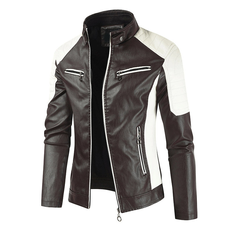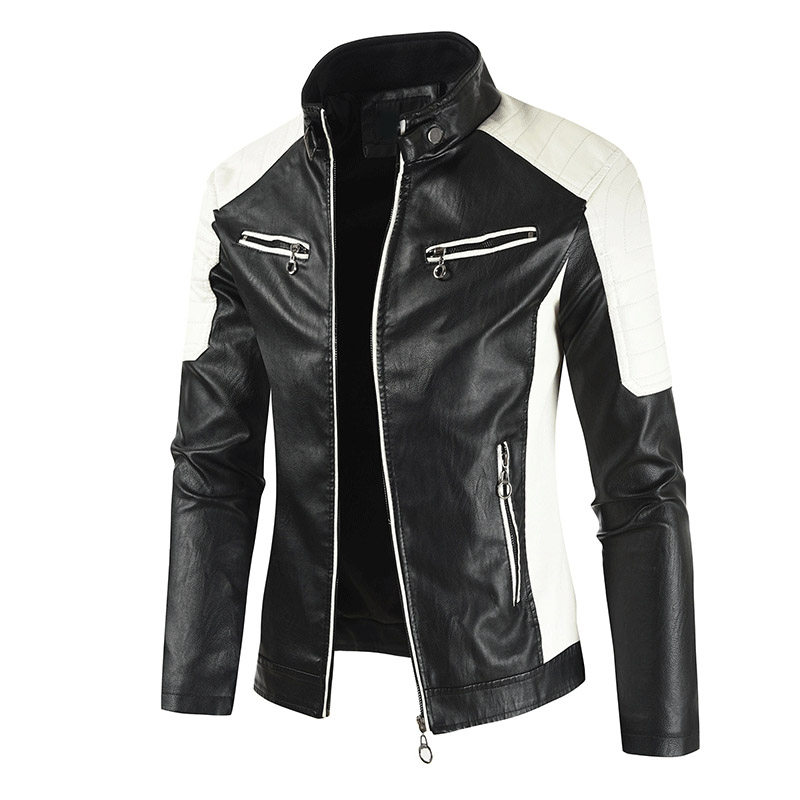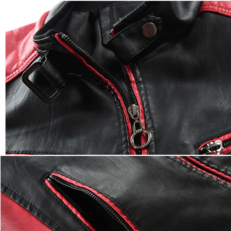 2020 autumn and winter add cashmere baseball men's stand-up collar color slim motorcycle personality warm thickening large size casual leather clothing