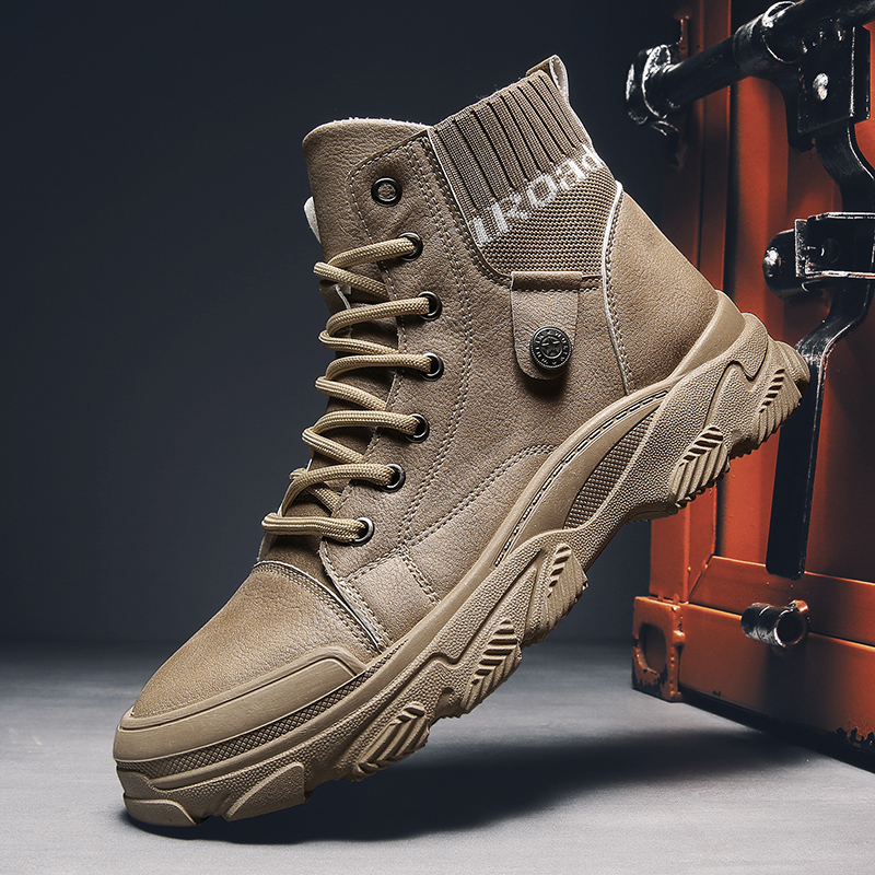 Martin Boots Man Overalls Winter Men's Shoes Snowy Desert Retro Locomotive Short Boots Waterproof High Cylinder Plus Suede Warm Cotton Shoes