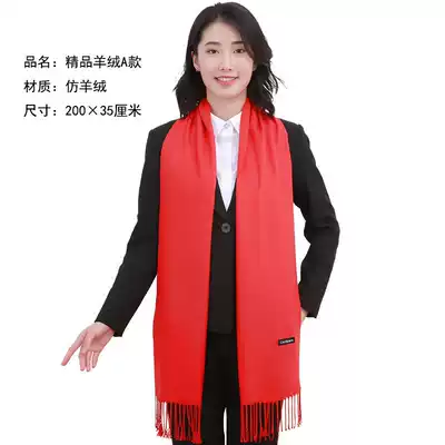 Red men and women party gifts 2020 new annual meeting red scarf custom logo printing widened autumn and winter China Red