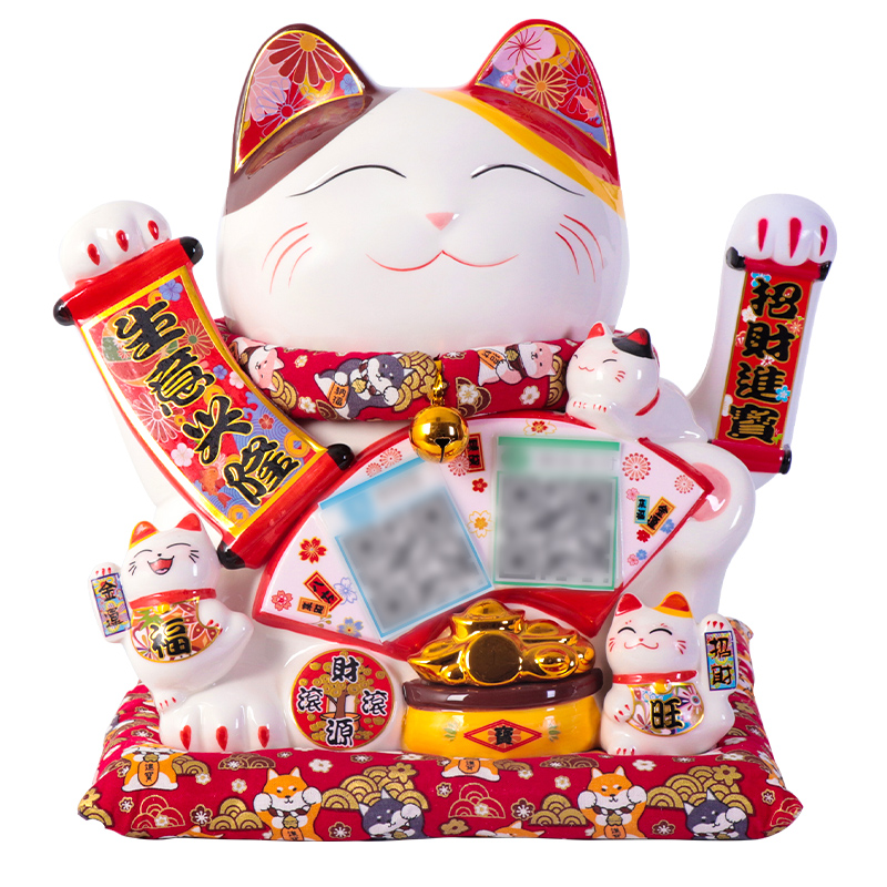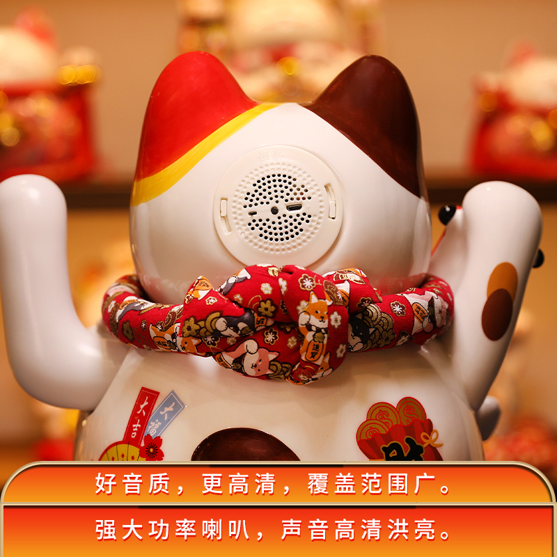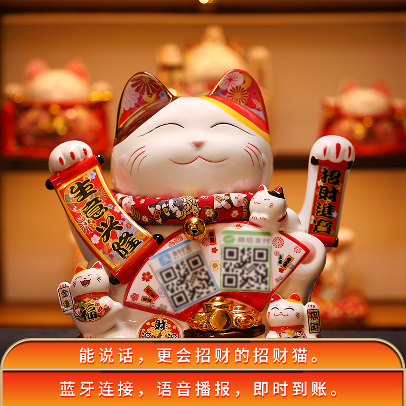 Large lucky cat shaking hands ornaments opening store cashier counter bluetooth audio store QR code automatically beckons