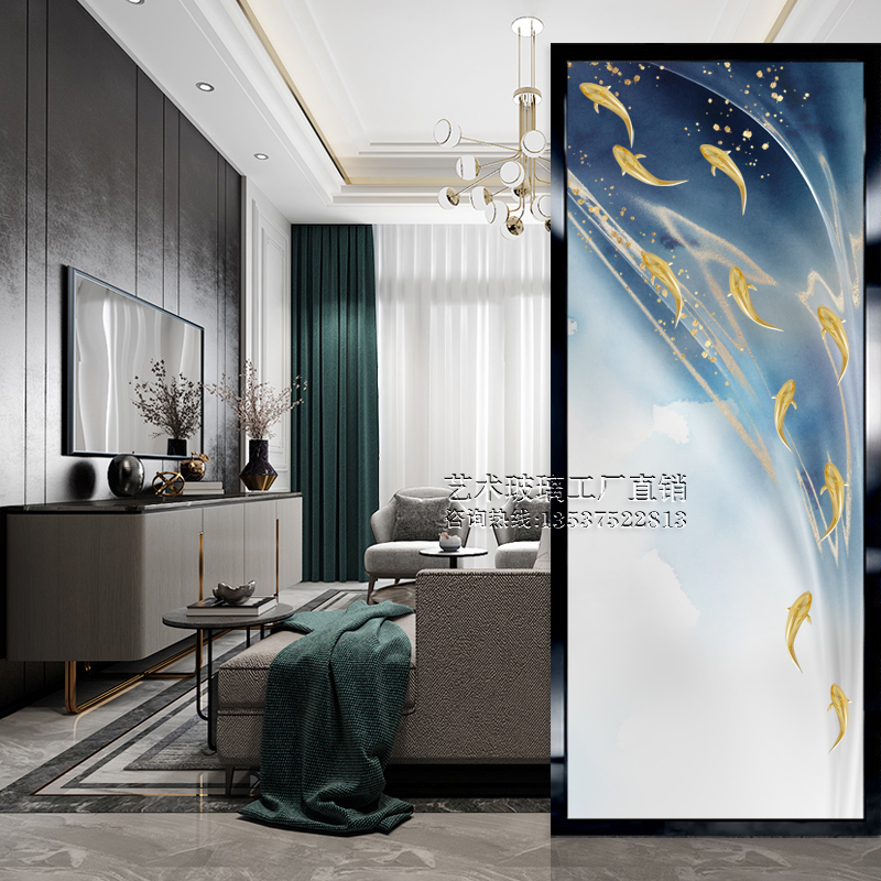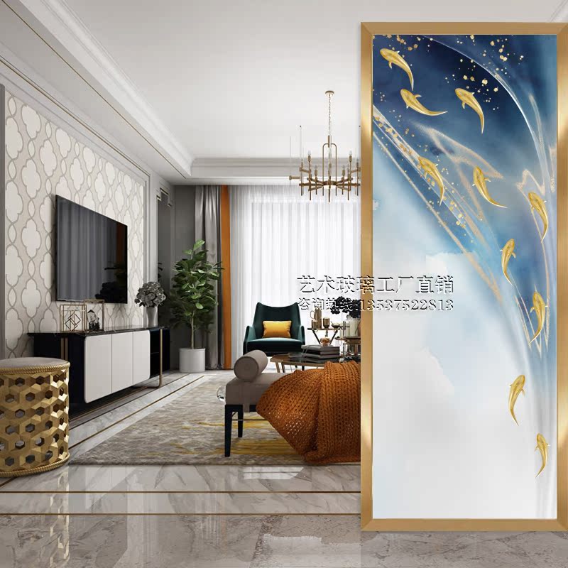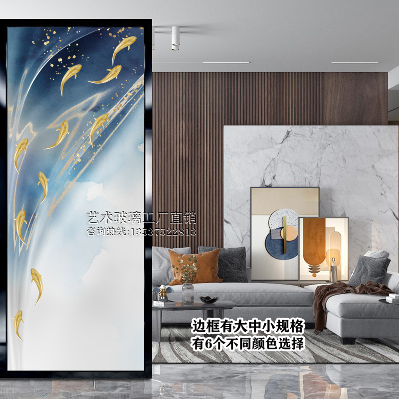 Art glass Custom Screen gangway partition Living room Double face frosted light transmission painted modern light and luxurious wind-Taobao