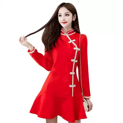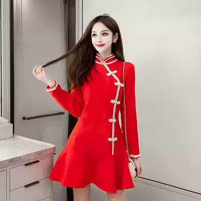 Young cheongsam women's winter thickened red New Year's robe small dress improved winter dress Chinese style
