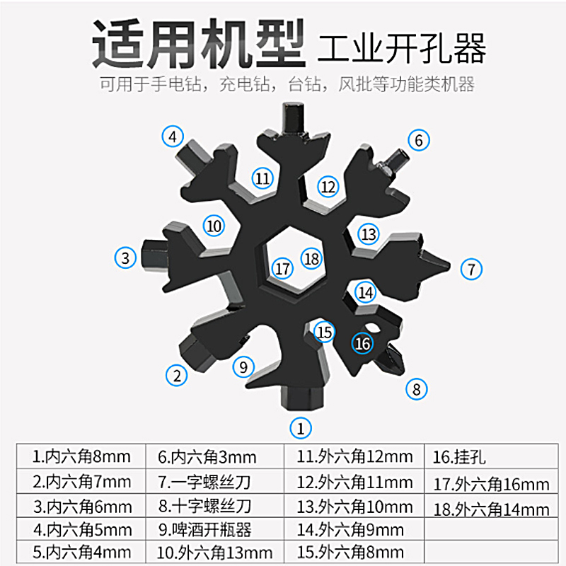 Net Red Shake Sound Universal Wrench Multifunction Snowflake Wrench Edc Sleeve Hexagonal Octagon Portable Universal Tool Card