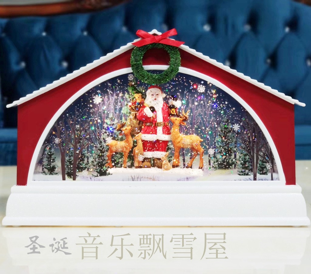 Christmas Red House Music Box Music Box Music Snow Night Lights Warm and Romantic Holiday Gift Sequins Flashing Lights