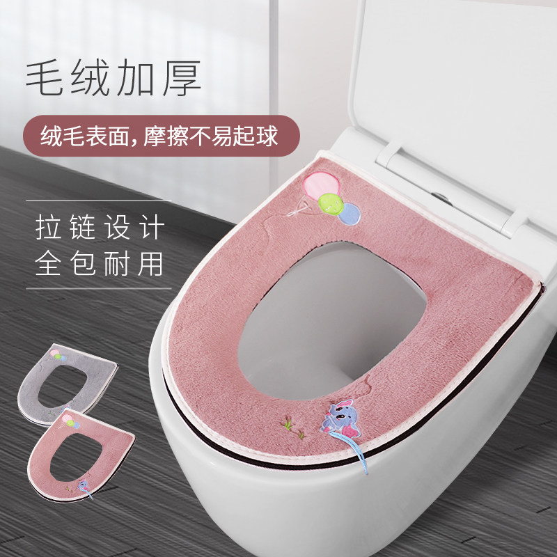 Toilet seat household plush toilet seat winter toilet seat universal waterproof toilet seat zipper cute