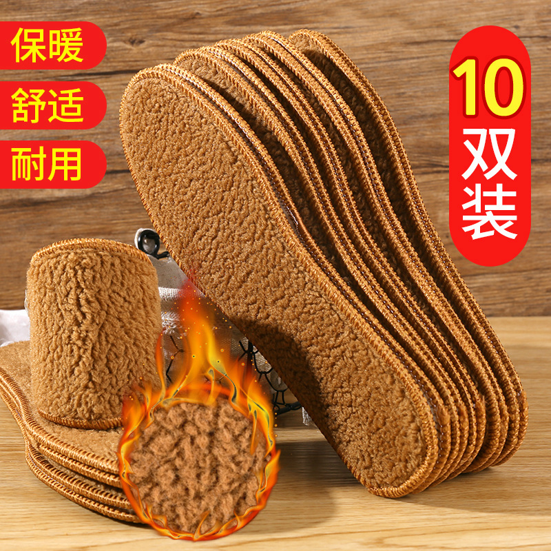 10 pairs of warm insoles women's winter plus velvet thick soft bottom insoles men's deodorant sweat-absorbing breathable plush washable