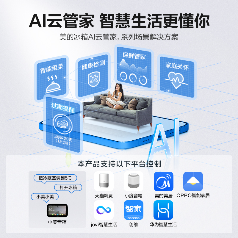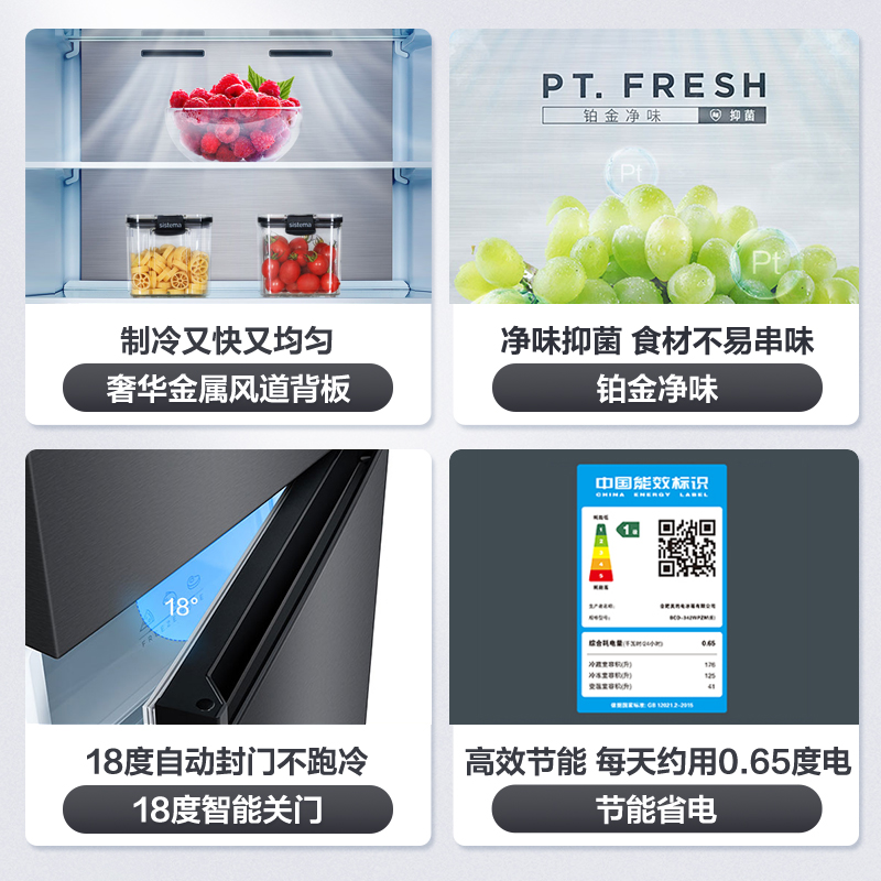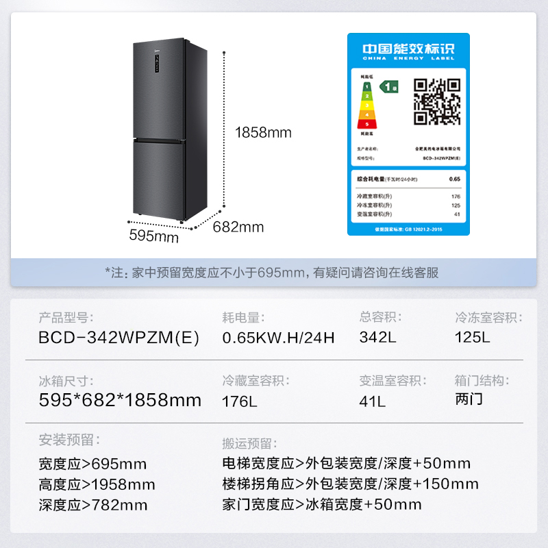 Midea Beauty BCD-342WPZM(E) Two-door air-cooled frost-free energy-saving refrigerator home double-door refrigerator
