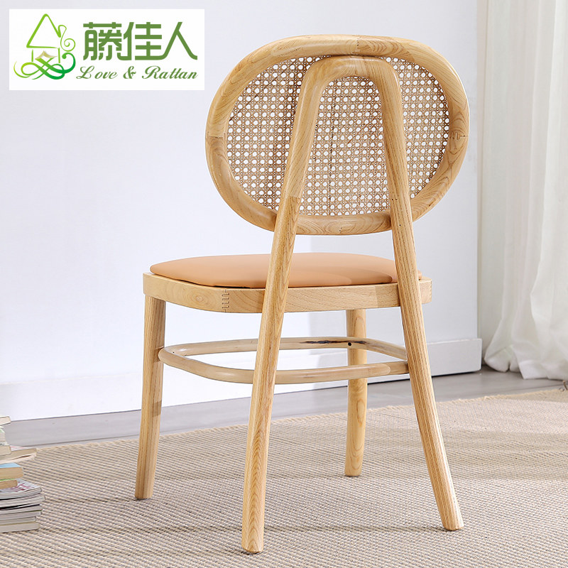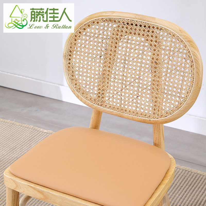 Rattan beauty Nordic middle rattan chair Simple modern backrest wooden chair ins designer net red household dining chair
