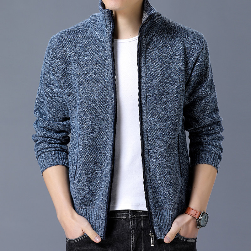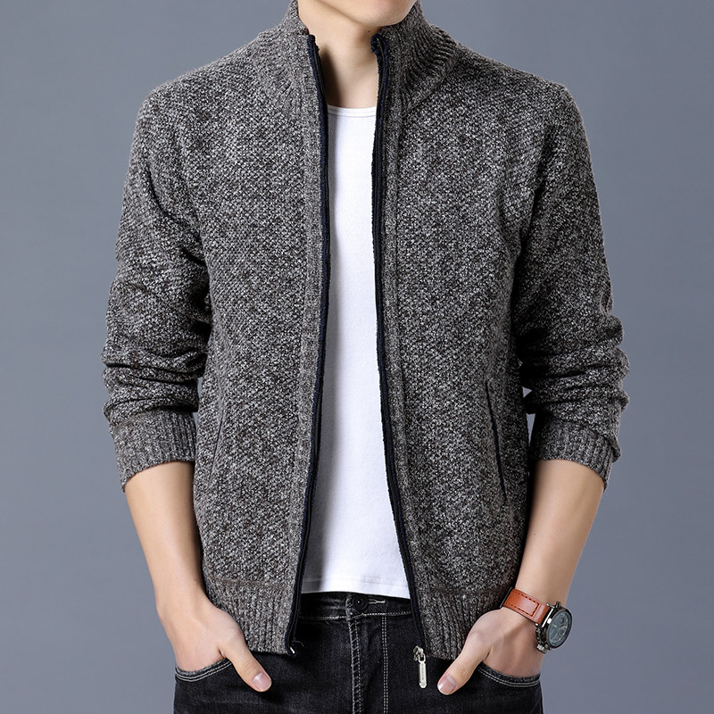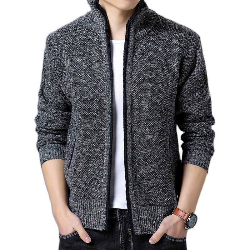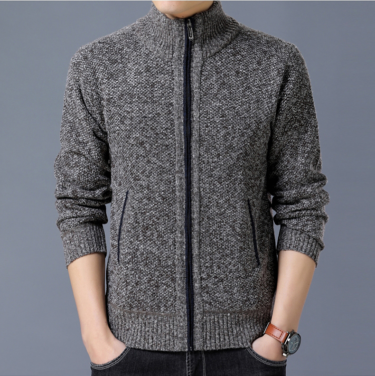 Wool knitted cardigan men's Korean style autumn and winter fleece thickened trend casual outerwear stand collar loose sweater jacket - Taobao