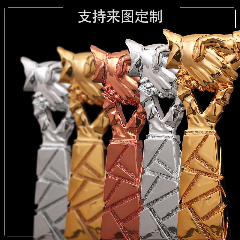 New resin handshake gold-plated trophy custom gold, silver and copper company cooperation and win-win team collaboration trophy custom