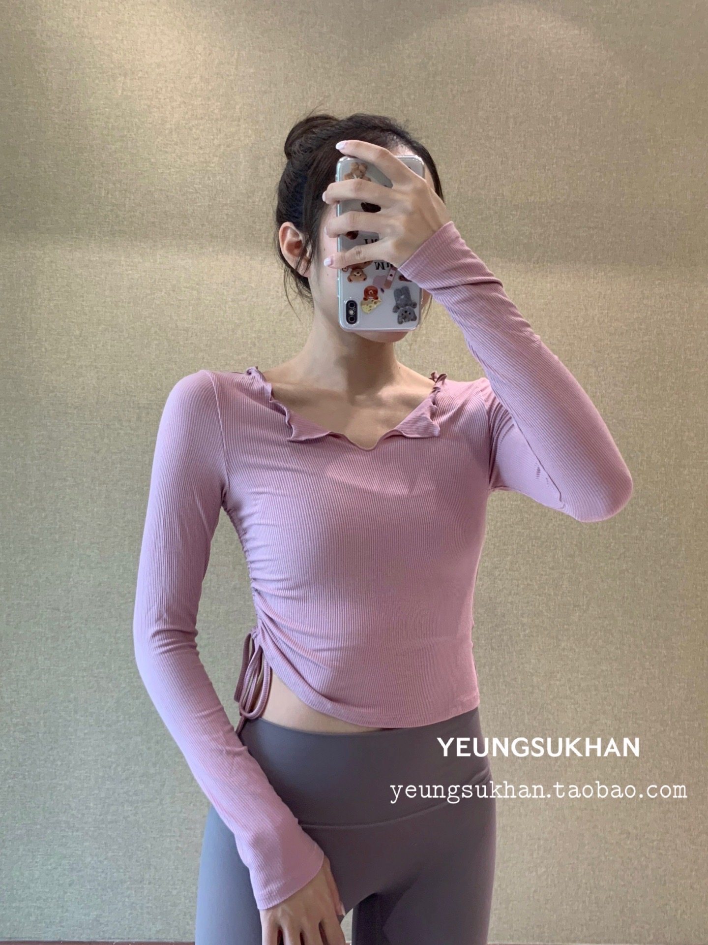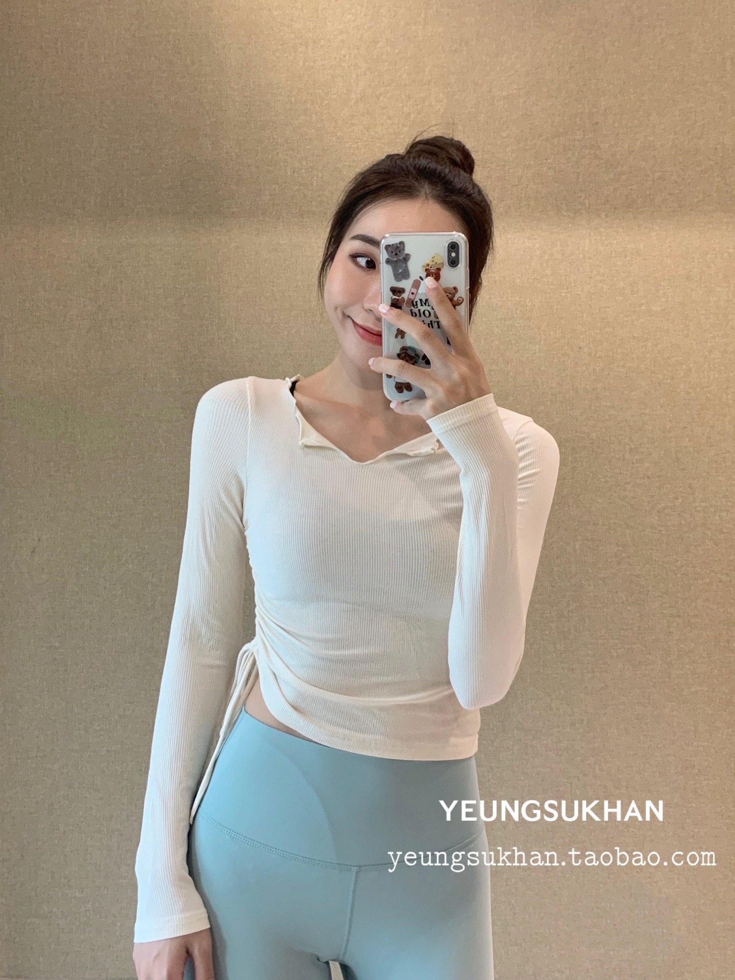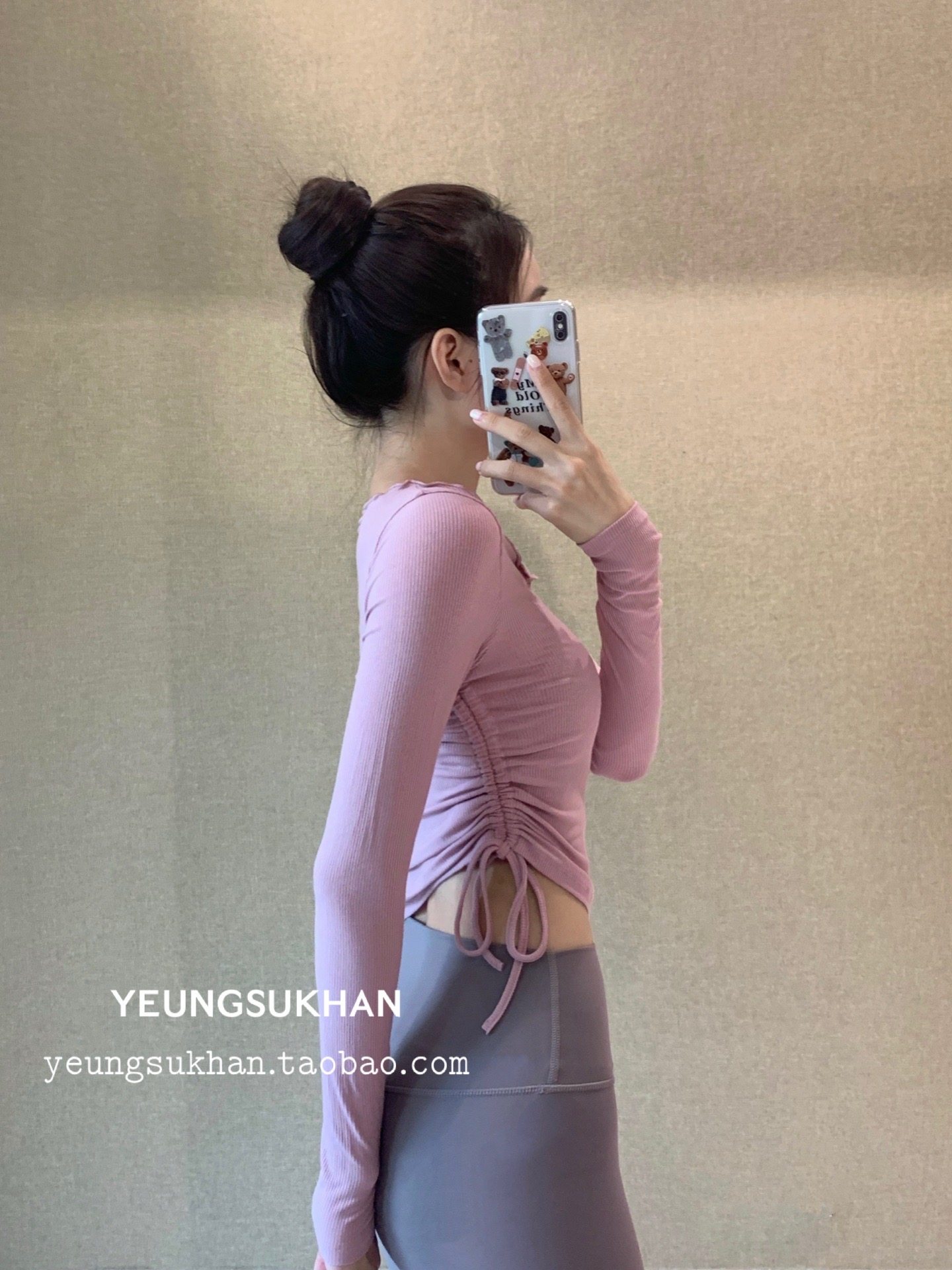 YEUNGSUKHAN small lapel drawstring top *thread slimming long-sleeved yoga clothes fitness clothes girls design
