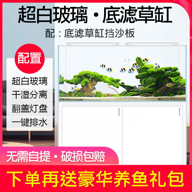 Small and medium-sized ultra-white glass desktop living room water grass tank ecological lazy person free water change fish tank aquarium bottom filter belt cabinet