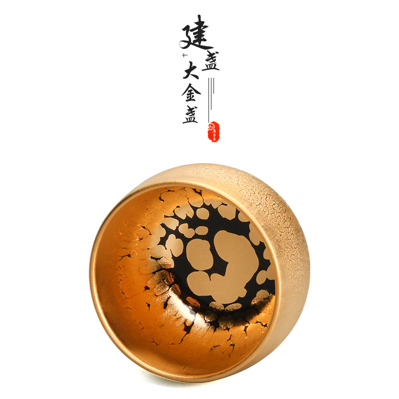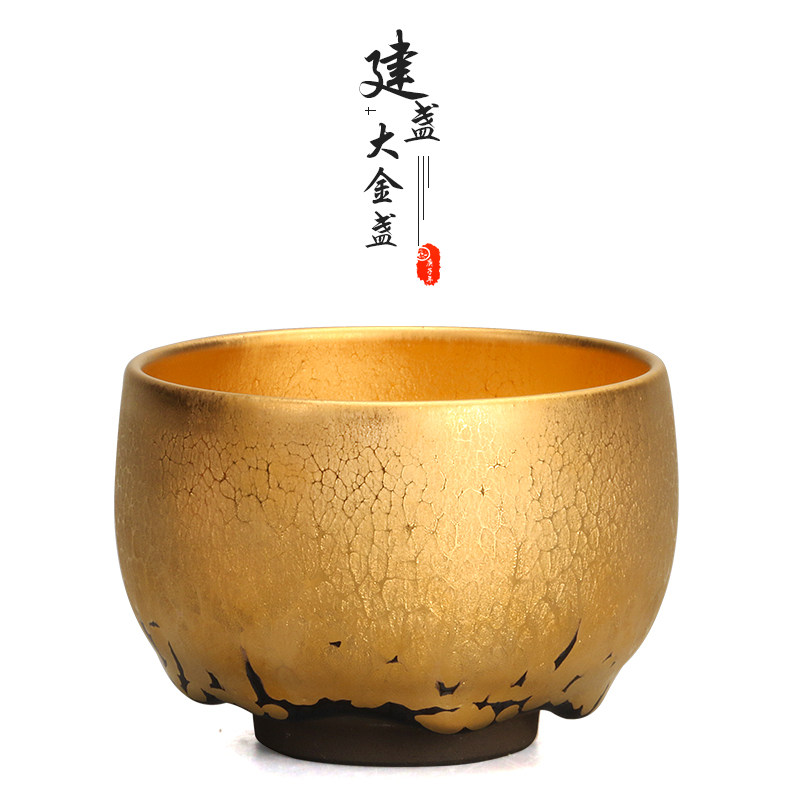 Jianzhan pure handmade ceramic raw ore iron tire gold oil drop kiln becomes Tianmu cup tea cup gilded kung fu tea set master cup