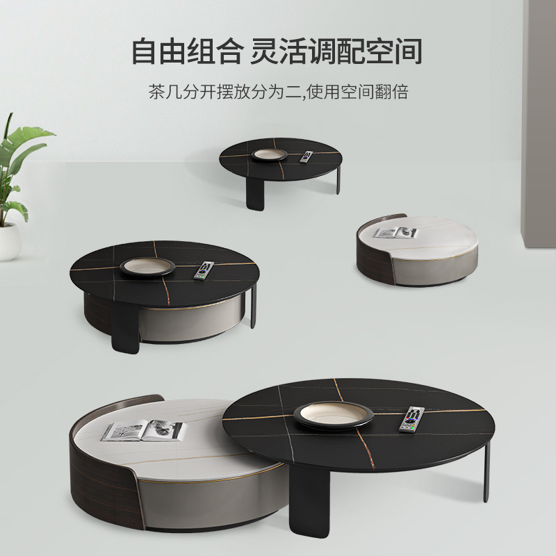 Yiluo Italian rock plate coffee table Round living room Light luxury modern tea table Household small apartment Nordic simple tea table