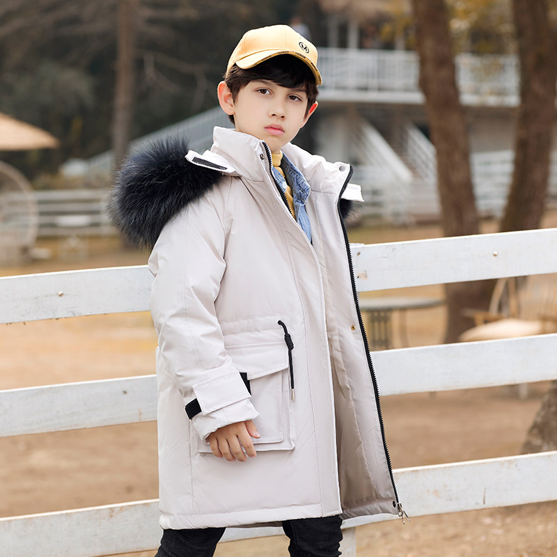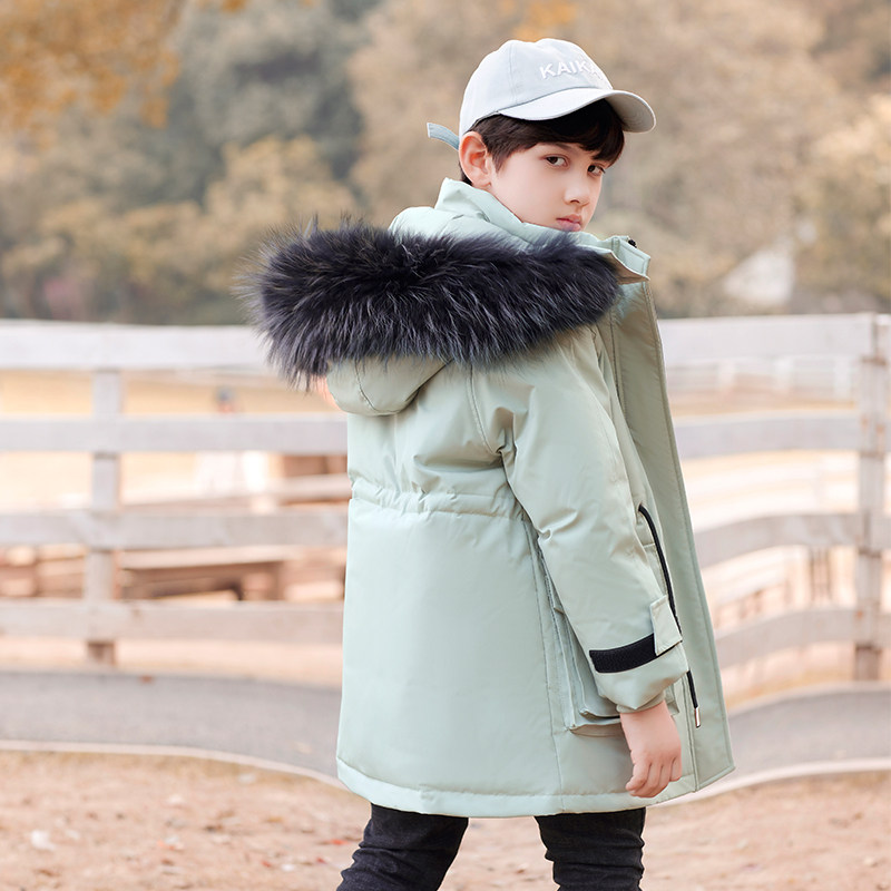 Children's down clothes boys in the long version of 2021 new foreign school Korean version of the big children thickened winter coat anti-season