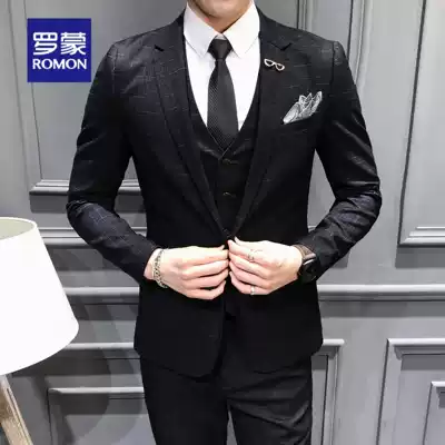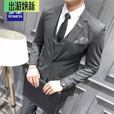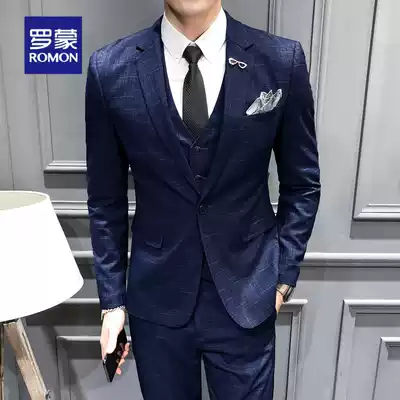 Romon gentleman plaid suit suit suit suit men business casual dress slim handsome groom wedding suit dress