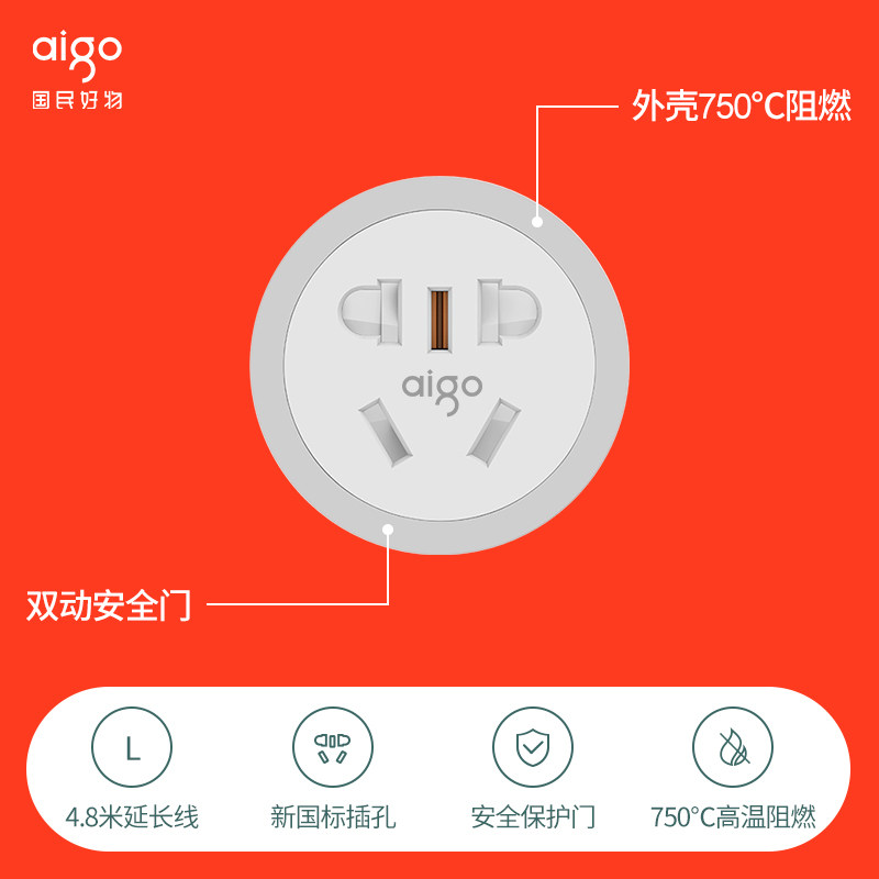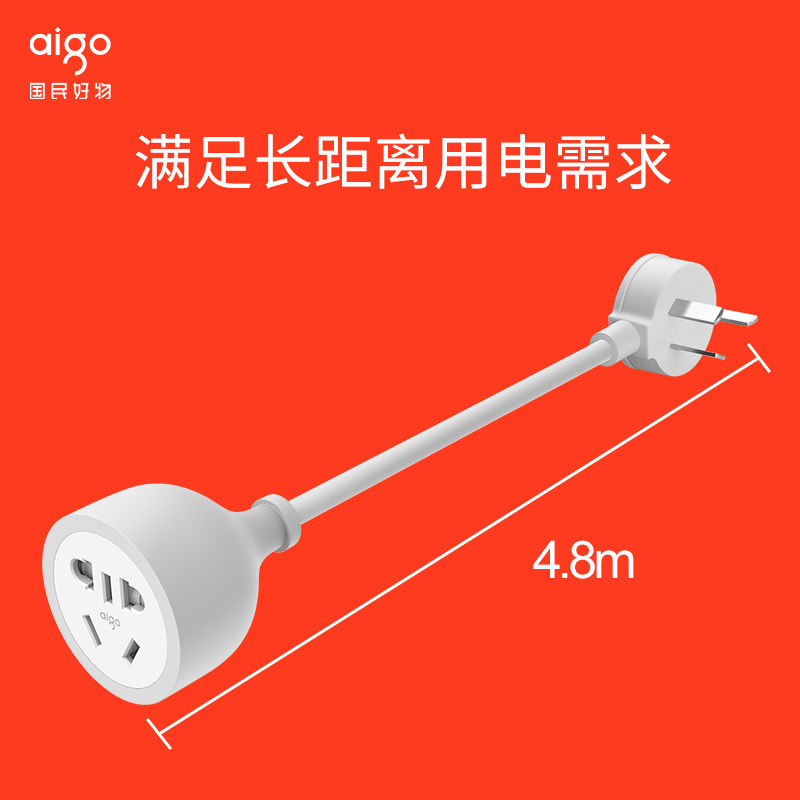 aigo Patriot extension cord power socket 4 8 m 10A Three-core plug wiring board Three-hole extension cord socket