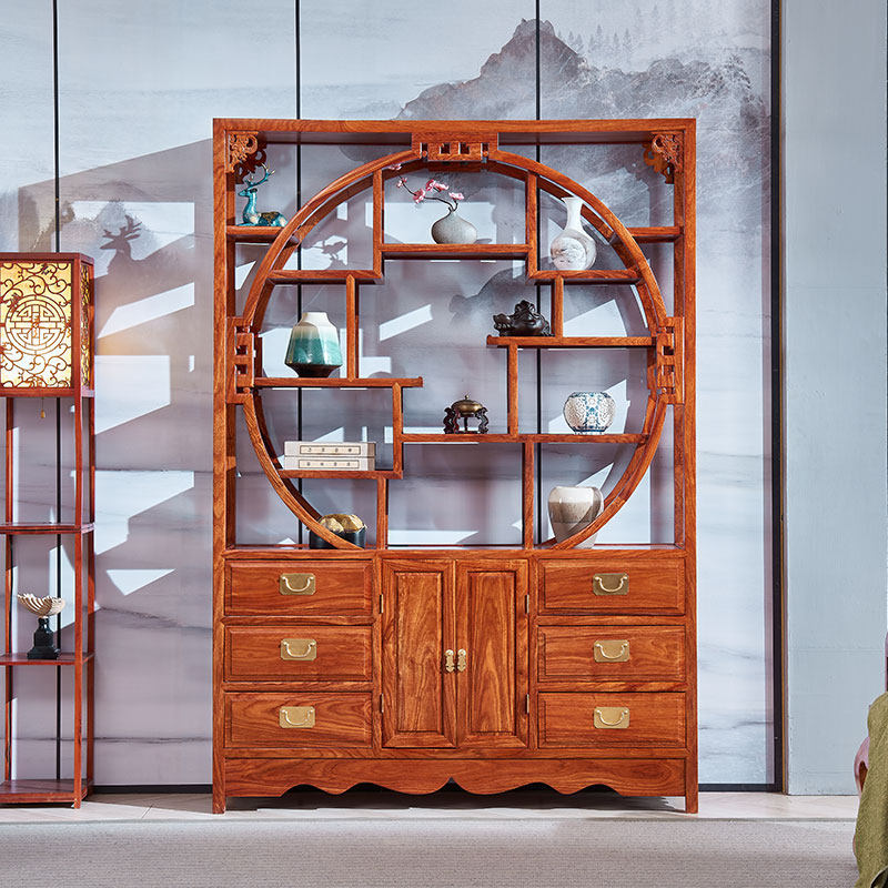 Mahogany furniture, rosewood, hedgehog, red sandalwood, two doors, six drawers, big five, Fubo ancient frame, solid wood storage, Chinese style Duobao Pavilion