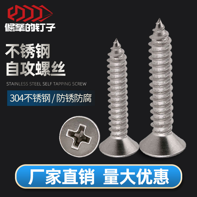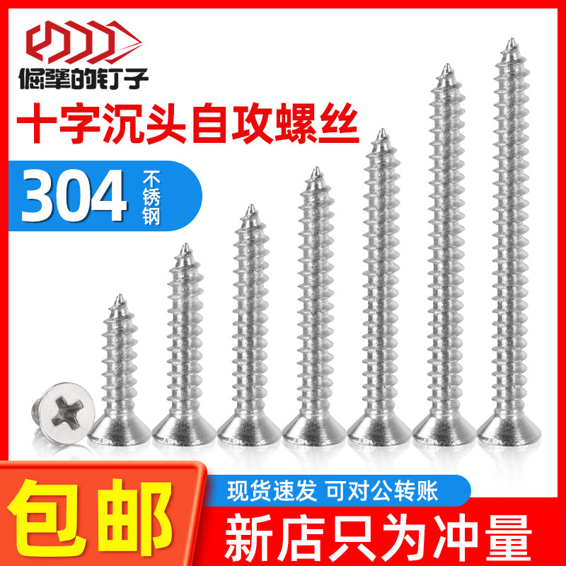 Stainless steel self-tapping screw 304 cross countersunk head wood screw flat tip tail length gongs M2M3M3 5M4M5