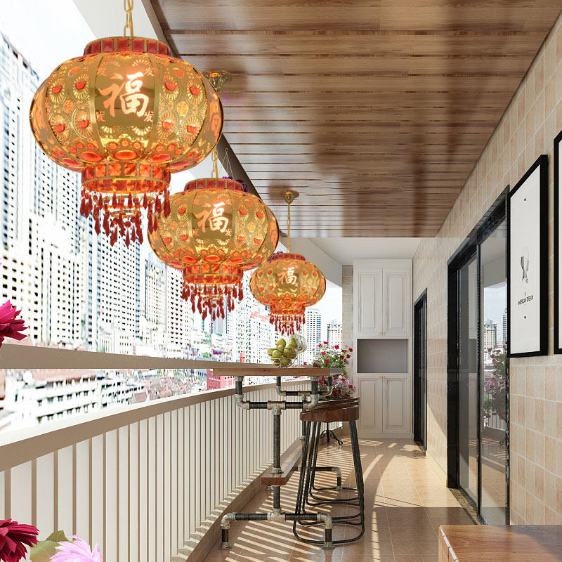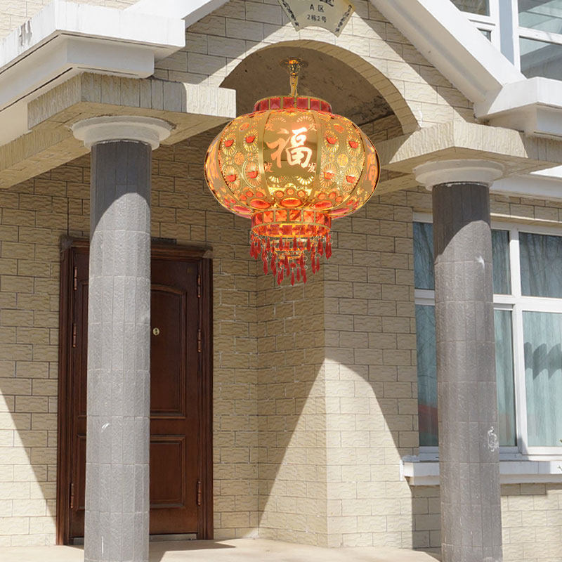 Balcony crystal lantern rotating red lantern glowing New Year's wedding housewarming gate outdoor walk kerosene lamp blessing word