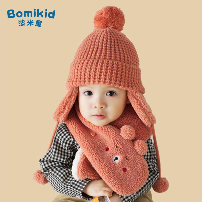 Children's hat autumn winter plus suede boy warm hat scarf suit Korean version female baby chill and cute protective ear cap-Taobao