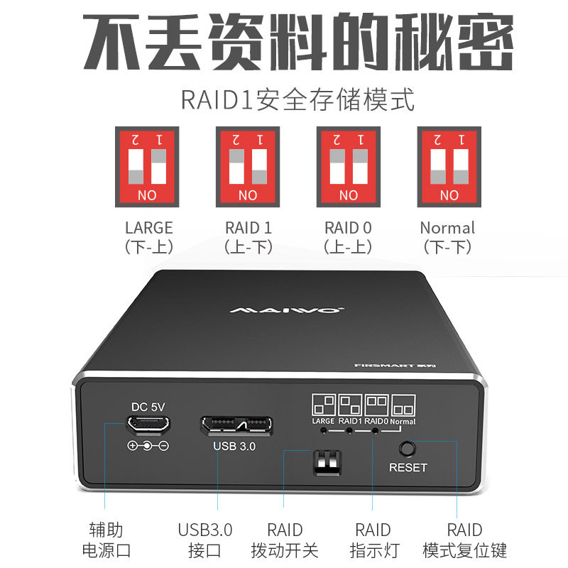 Maiwo portable hard disk box 2 5-inch dual-disk RAID array usb3 0 solid-state mechanical external box K25272