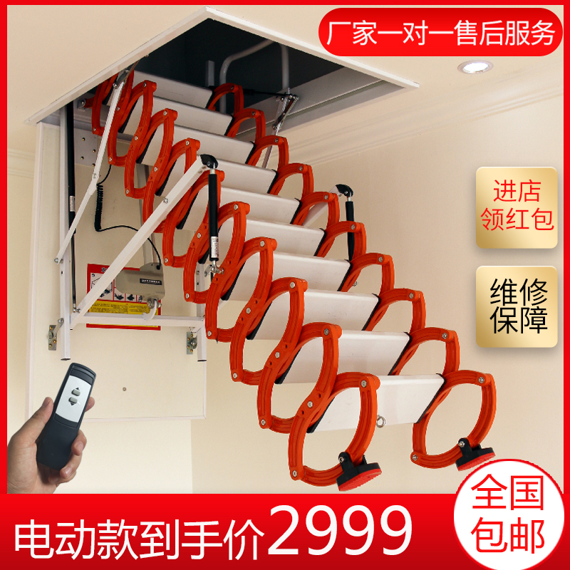 Automatic attic telescopic stairs Invisible lifting stretching ladder Villa duplex household indoor electric folding ladder