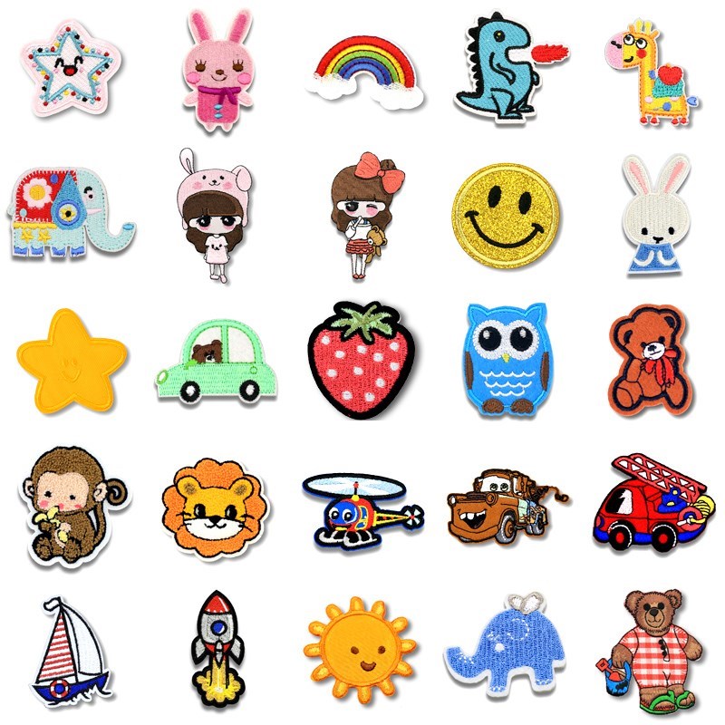 Clothes label cloth sewn logo hole sticker hole fashion hole Children's embroidery cartoon cloth patch patch patch