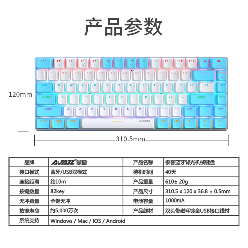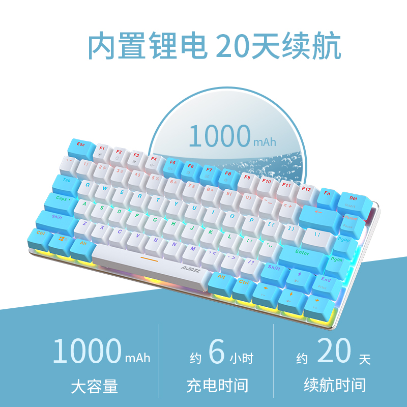 Black Baron Wireless Bluetooth Mini Mechanical Keyboard 82 Keys Knocks Code Red Shaft Green Shaft Takeaway Laptop Fit Ipad Apple Mac Flat Office Special Small 87 Key Dual-mode Fresh