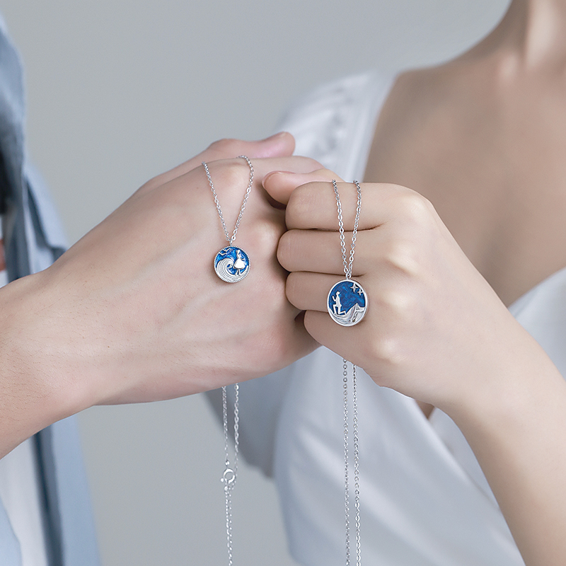 Shanmeng eachother necklace sterling silver pair of original design long-distance love student couples creative lettering niche