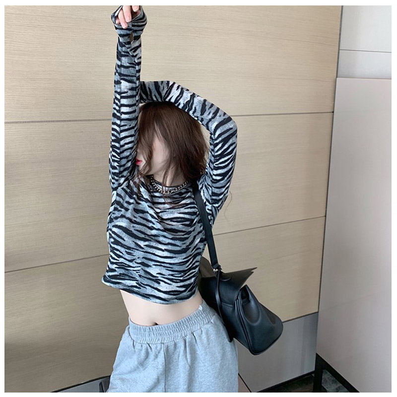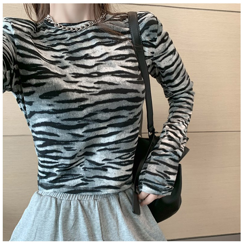 Black zebra print T-shirt women's tight-fitting long-sleeved autumn and winter inner bottoming shirt 2020 new short top trend